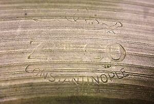 Note: there is no "TRADE MARK" to the sides of the moon and star, there is also no "M. Paiste" signature, at some point, those elements were added to the German made Zilkos