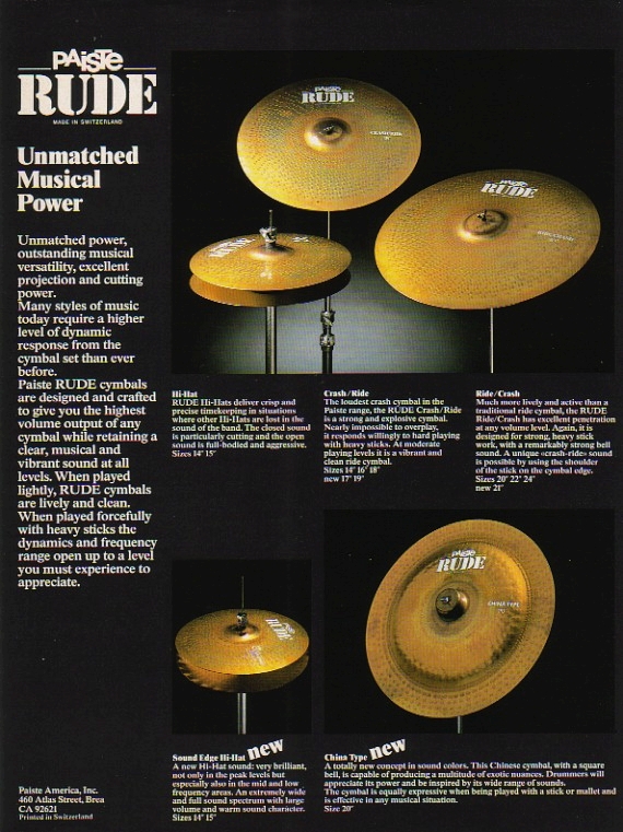 | 17:39, 10 August 2021 | Paiste rude 80s advert.jpg (file) | 280 KB | Type85 | 1 | ||