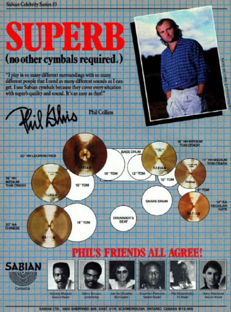 1986 (right to left) - Sabian ad (Modern Drummer May '86)