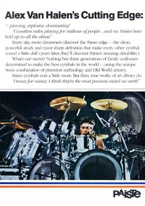 | + | [[File:1996 Alex Van Halen Ad.jpg|thumb|right|x200px|Paiste Ad 1996]] | ||