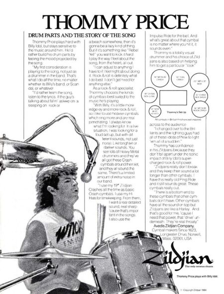 Revision as of 01:14, 17 December 2023 by Bluejacketsfan (talk | contribs) (Created page with "__NOEDITSECTION__ == Thommy Price== <div style="float:right">__TOC__</div> thumb|right|450px|1985 Zildjian ad '''Bands / Ac...")